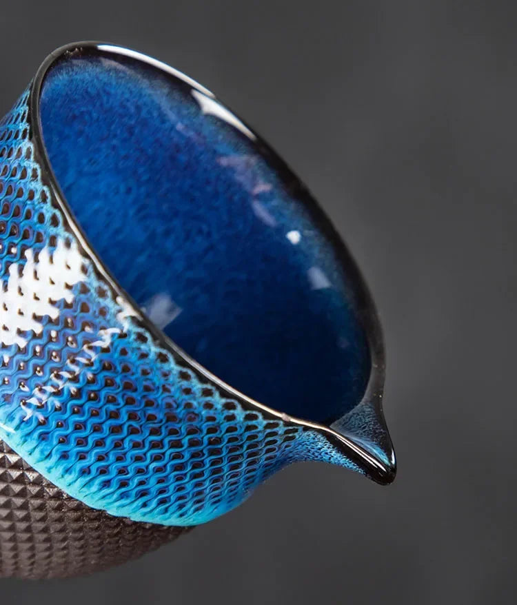 - Céramique émaillée artisanale, aux reflets bleu nuit texturés