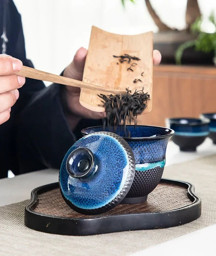 Offrez-vous un instant de calme et de beauté, même en voyage. Ce set de thé nomade associe la tradition du thé asiatique à un design compact, esthétique et raffiné. Le Bol Céleste, pièce centrale de ce coffret, invite à une dégustation élégante et sensorielle, où que vous soyez.